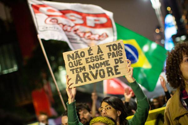 Protesta en defensa de la Amazonía en Sao Paulo el viernes 23 de agosto. Foto de Romerito Pontes.